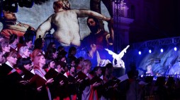 А вместо тщательно выписанных задников декорациями становятся видеопроекции, и в какой-то момент, когда площадь в «Сельской чести» оказалась обозначена углами и стенами старинных домов, у зрителей возник эффект присутствия… на Екатерининской площади, спиной к статуе Дюка. Очень похоже! Как будто публика слушает оперу на пленэре, но погодные условия не мешают, микрофоны не глохнут, да они и не нужны, всё отлично слышно…
