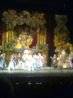 Был на этом спектакле, мне показался он средненьким, может потому что сидел далеко... Декорации и костюмы очень красивые. |