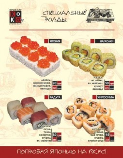 Приглашаем Вас отведать деликатесы Японской кухни! А также в честь открытия очень низкие цены и скидка 10%. Всем кто не равнодушен к японской кухне Всем кто любит встречаться с друзьями и весело проводить время, Всем кто любит большие скидки и отличную еду — ВСЕМ СЮДА!!! Отличная европейская кухня и большое барное меню.Закажи 3 специальных ролла и 4 получи в подарок!!! Японский бизнес ланч всего за 50 грн!!!!!! Мисо суп с тофу + японкий рис + 2 нигири с томаго и напиток на выбор. |