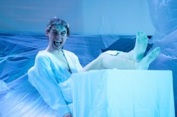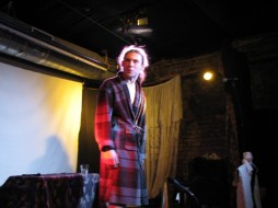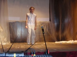 Сознаюсь, до середины спектакля, пока не дошел до моего среднего умишка замысел режиссера (еще вопрос – а дошел ли?), было неприятно и немного смешно следить за неестественными вывертами актера, который, кстати сказать, весьма успешно справлялся со своей задачей, достигнув естественности в неестественном. Он с неимоверной скоростью перетекал из образа в образ, словно ртутный шарик, и в этом был едва ли не виртуозен.