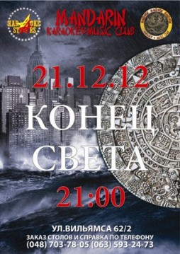 | 7 августа 2012, вторник: | | Концерт легендарных гитаристов Украины | | 14 августа 2012, вторник: | | Blues Night | | 28 августа 2012, вторник: | | Гитара на бис | | 4 сентября 2012, вторник: | | Рок-Тусовка | | 7 сентября 2012, пятница: | | Одесский вечер | | 30 сентября 2012, воскресенье: | | My Ink & The Freebies | | 30 ноября 2011, среда: | | Валерий Гаина в Одессе! | | 16 ноября 2012, пятница: | | Валерий Гаина в Одессе! | | 5 октября 2012, пятница: | | Церера и Нижний Свет | | 13 октября 2012, суббота: | | Odessa Metal Meeting | | 17 января 2013, четверг: | | SevenSeas | | 27 января 2013, воскресенье: | | SevenSeas | | 26 октября 2012, пятница: | | Generation P & Drive Action | | 31 октября 2012, среда: | | Heavy Halloween | | 31 октября 2012, среда: | | Halloween в Мандарине | | 21 ноября 2012, среда: | | The Lone Dark Side | | 27 ноября 2012, вторник: | | Mon Amour? Mon Ami | | 11 декабря 2012, вторник: | | Пожарный кран | | 18 декабря 2012, вторник: | | Peter Newall & Blues Preachers | | 21 декабря 2012, пятница: | | Конец Света в Мандарине | | 20 декабря 2012, четверг: | | FBR | | 31 декабря 2012, понедельник: | | Новогодняя ночь 2013 | | 24 января 2013, четверг: | | ФБР | | 25 января 2013, пятница: | | Пиратская вечеринка «Остров сокровищ» | | 30 ноября 2012, пятница: | | Концерт группы "Комора-mix" | | 5 февраля 2013, вторник: | | Концерт группы "Комора-mix" |