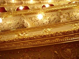 Зрительный зал Одесского оперного театра декорирован в стиле позднего французского рококо, украшен лепным орнаментом с тончайшей позолотой. Главный мотив – раковина в виде завитков различной формы. Рисунок орнамента нигде не повторяется.