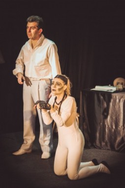 Спектакль “Аз есмь тварь”, современного украинского драматурга Виктора Понизова, замешан на магии. Его суть о наших грехах. Действие происходит в чистилище и человек должен там -раскаяться. Но смысл не в том чтобы найти самый большой грех, а в том, чтобы найти источник своих грехов -самый первый, который служит толчком для последующих, самых тяжких. Всего 3 действующих лица. Условно Хороший и так же условно Плохой и УОВэВэГэ – Условно Обобщенное Воплощение Ваших Грехов, проще говоря – жертва, наглядное пособие. Смысл пребывания в чистилище -искреннее раскаяние. Ведь на том свете мы ни на секунду не задумываемся о том, как мы живем, что мы творим, думаем, что ТАМ нам все сойдет с рук.
