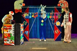 Режиссёр: С. Брижань Актёры: 1-й клоун, Белочка, Бука – О.Стахив, Ольга Чабан, Ангелина Смиян 2-й клоун, Мишка, Волк – Андрей Кулешов Дядюшка Поиграй – В.Стрелец, С.Михайленко. Спектакль — клоунада! Спектакль – игра! Много музыки и песен.Маленькие зрителя становятся участниками представления. Для детей дошкольного возраста. Веселое представление в центре которого капризный зайчик Бука. Зайчишка всегда чем-то недоволен, всем грубит потому и получил такое обидное прозвище. С помощью Белочки и Медвежонка, чью дружбу Бука не хочет принимать, дядюшки Поиграя и двух клоунов все же удается перевоспитать задиру и упрямца в доброго и вежливого Зайчонка. Внимание! Зрители с детьми до 2-х лет на спектакли театра не допускаются. Каждый зритель обязан иметь индивидуальный билет, не зависимо от возраста. |