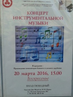 В постоянной экспозиции — работы художника Смирнова-Русецкого Б.А., ученика Н.К. Рериха; репродукции работ Н.К. Рериха и Св.Н.Рериха; работы одесских современных художников.Вход свободный. |  | |  |