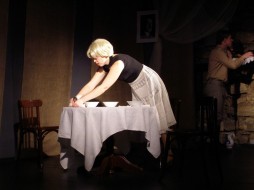 Режиссёр: О.Кондратьева Актёры: Юдифь Кейт, Фрау Фурке - Елена Юзвак Фриц, Карл - Александр Онищенко Клаус-Генрих - Владислав Костыка Служанка - Татьяна Параскева Одноактный спектакль По мотивам пьес Б.Брехта «Жена-еврейка», «Меловой крест» и «Шпион». Попытка реконструкции эпического театра Б.Брехта,в которой не скрывается акт актёрства,а зрителю не дают погрузиться в эмоциональное сопереживание героям. «Всякий, кто хочет устранить только то, что причиняет ему страдание, недостаточно дальновиден, ибо благо не обязательно идет следом за злом; за ним может последовать и новое зло, и притом еще худшее». Возрастное ограничение от 14 лет. |