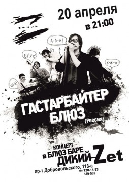 Одесса. Осень. Гастарбайтеры. Гастарбайтеры от блюза — это группа Гастарбайтер блюз из Липецка (Россия). Дмитрий Григорьев — вокал, Дмитрий Кравченко — гитара, Роман Застрожин — губная гармоника, Сергей Калинкин — бас-гитара, Олег Федченко — барабаны. Десять лет в блюзе и только один день в Одессе, в одном из самых уютных мест города — Блюз баре «Дикий Z«