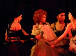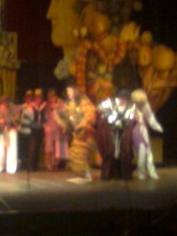 Был на этом спектакле, мне показался он средненьким, может потому что сидел далеко... Декорации и костюмы очень красивые. |