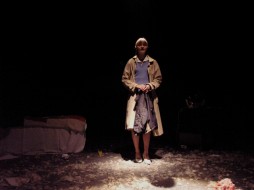 Подчеркнуто-бытовая, почти условная декорация — стул, стол, настольная лампа, кушетка — словно усиливала основную мысль пьесы о том, что мы на этой земле пришельцы, странники