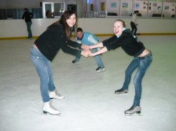 побывали на катке! вначале получив коньки грохнулась поскользнувшись, на неровном обмерзшем льдом полу. идем дальше, садимся, обуваем ботинки, а прижигаем зажигалкой концы шнурков, потому что на шнурках нет наконечников, зашнуровываем. не забудьте взять зажигалку!!! ботинки старые, носки у коньков спиленные, стоять на них невозможно, кататься очень неудобно. на выходе попросили доплатить за просрочку, за временем нужно следить каждому лично!