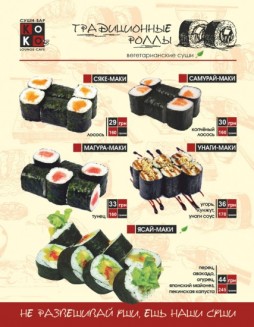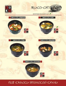 Приглашаем Вас отведать деликатесы Японской кухни! А также в честь открытия очень низкие цены и скидка 10%. Всем кто не равнодушен к японской кухне Всем кто любит встречаться с друзьями и весело проводить время, Всем кто любит большие скидки и отличную еду — ВСЕМ СЮДА!!! Отличная европейская кухня и большое барное меню.Закажи 3 специальных ролла и 4 получи в подарок!!! Японский бизнес ланч всего за 50 грн!!!!!! Мисо суп с тофу + японкий рис + 2 нигири с томаго и напиток на выбор. |