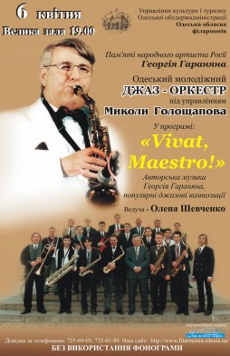 Концерт памяти народного артиста России Георгия Гараняна Одесский молодёжный джаз-оркестр под управлением Николая Голощапова в программе «Vivat, Maestro!»