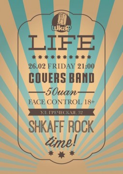 посмотрим как ты запоешь вместе с парнями из уличного кавербенда «Life». Жизнерадостные, полные любви и на острие приятного романтизма! Многие любят их из-за неподдельной любви к отечественной сцене. Приходите #shkaff в пятницу, порадуйте себя хорошей и доброй музыкой!