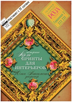 11 сентября арт-кафе «Чайная роза» представляет персональный проект художника — декоратора Юлии Максименко. Это первая персональная выставка молодой художницы. В проекте представлены 35 принтов для интерьеров, выполненных в стиле ретро.