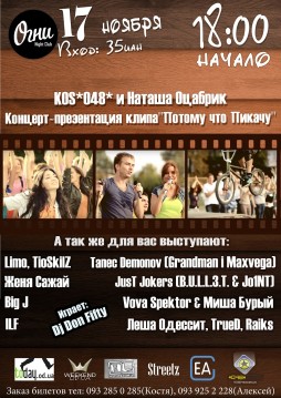 Дорогие друзья, хочу пригласить вас на концерт- презентацию своего нового клипа, под названием «Потому Что Пикачу».