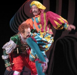 Режиссёр: Георгий Делиев Феерическая комедия со счастливым концом в исполнении комик-труппы «Маски» по одноимённой пьесе Б.Барского Джульетта — девочка-переросток тридцати пяти лет — обещана в жены Парису, родственнику князя, неоднократно травмированному в голову утюгом. Неожиданная встреча на балу с Ромео — восторженным дебилом — зажигает в сердцах влюбленных негасимую страсть. С этим не могут смириться отец Джульетты — старик-маразматик Капулетти, и ее брат Тибальт — задира, забияка и драчун. В результате ссоры Тибальт убивает горшком из-под цветов Бенволио — приятеля Ромео. Убивает подло, в спину, исподтишка. Ромео в порыве ярости до смерти кусает за ухо Тибальта, от чего тот трагически умирает. Джульетта тайно назначает Ромео свидание: на кладбище, где в результате комичных хитросплетений и неожиданных поворотов сюжета к всеобщей радости пьеса заканчивается вселенской любовью, торжеством юмора, молодости и красоты. |