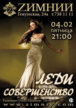 Зимний представляет конкурс красоты успешных Леди Мира сего! Показы одежды от партнеров конкурса, превращенные в фиерическое шоу! Призы для гостей и конечно же after party! Ведущий конкурса MC Mario!