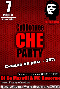 Фирменная вечеринка от Ресторана Che Geuvara , для любителей Ретро и Диско 80х-90х.