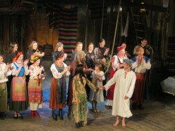 Режиссёр: засл. деятель искусств России Георгий Ковтун Актёры: С. Крупник нар. арт. Украины, Р. Коваль, А.Дриженко нар. арт. Украины, Я. Белый, Д. Жильченко Сюжет повести Николая Васильевича Гоголя «ВИЙ» — один из самых таинственных, пугающих и увлекательных сюжетов классической литературы. Жанр спектакля «ВИЙ» — мюзикл, а специфику этой масштабной постановки можно, используя «киношную» терминологию, назвать спецификой блокбастера. Действительно, «ВИЙ» — это своеобразный театральный блокбастер — с масштабными костюмированными сценами, танцами, песнями, очень сложными и зрелищными трюками и спецэффектами. Три ночи в зловещей заброшенной церкви, у гроба ведьмы предстоит отстоять главному герою спектакля — Хоме Бруту, и каждая следующая ночь будет страшнее предыдущей… Но, как и в повести Гоголя, страшные мистические сцены перемежаются бесшабашно-весёлыми и жизнерадостными зарисовками украинского козачьего быта. А неожиданный финал спектакля удивит даже тех, кто знает повесть Гоголя наизусть… «ВИЙ» — это зрелище с большой буквы, которое Вы должны увидеть! В спектакле принимают участие исполнительницы народных песен А.Ковтун и Л.Сорока, этнический хор Вузовского района Одессы, детский хор «Забава» — руководитель С.Смирнова, хореографический ансамбль «Калейдоскоп» — руководитель Т.Сливченко |