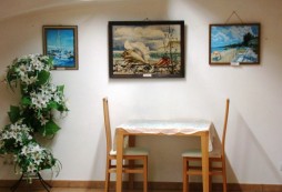 Отдельно выделены живописные и монументальные произведения Натальи Пахомовой. Разнообразие техник и стилей тонко дополняют назначение интерьера и особенности архитектурного объекта, где они находятся.
