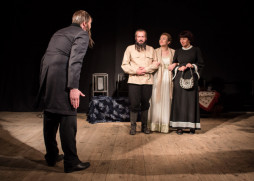 Антиакадемический рассказ об актёрах, персонажах и о том, как персонажи влияют на актёров. «Спектакль — визитная карточка» — так говорят о нем зрители. «За стеклом» является первой постановкой театра. Именно этим спектаклем открылся «Театр на Чайной» в апреле 2010 года. С тех пор спектакль пережил несколько редакций, побывал на фестивалях и успешно продолжает свою сценическую жизнь.