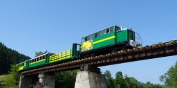 11:00 Посадка в старинные вагончики Карпатского трамвая и начинаем путешествие. Всех романтиков и любителей гор гостеприимно зовет к себе узкоколейная железная дорога, которую барон Леопольд Пеппер начал строить для транспортировки леса в конце ХIX ст. Ширина колеи составляет 770 мм, что в два раза меньше обычной железнодорожной колеи. Четырехчасовое путешествие на «Карпатском трамвае» проходит чрезвычайно живописным маршрутом по красивейшим и экологичнейшим местам Карпат. Вы сможете полюбоваться волшебной природой: горами, реками Мизунькою и Свечей, Мизуньскими водопадами, утолить жажду водой из горных источников, поправить здоровье минеральной водой «Горянка» (типа «Нафтуся»), попробовать чай из карпатских трав у бабы Ганьки.