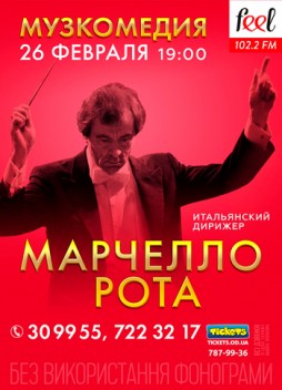 26 февраля в Музкомедии грядёт настоящий музыкальный праздник –концерт из произведений одного из крупнейших кинокомпозиторов XX века –легендарного Нино Рота. Программу из работ мастера к фильмам великих режиссёров: Феллини,Дзеффирелли и Висконти, а также знаменитую симфоническую сюиту из «Крёстногоотца» Ф.Ф. Кополы, дышащую южно-итальянским, сицилийским мелосом, исполнитсимфонический оркестр под управлением Марчелло Рота – племянника композитора,знаменитого итальянского дирижёра, одного из лучших интерпретаторов музыкальногонаследия Нино Рота.