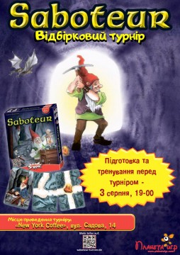 Готовимся к мировому Чемпионату по Саботёру! Учимся, тренируемся! Гномы-вредители, добрые гномы или гном-эгоист?! Кто окажется проворней и победит?! Регистрируйтесь заранее! Дата: 03.08.16. Время: 19:00-23:00. Место: «New York Coffee» на ул. Садовой, 14!