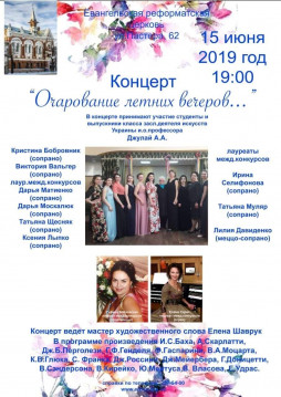 Приглашаем на вокальный концерт "Очарование летних вечеров.."в Пресвитерианскую церковь, ул. Пастера 62