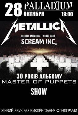 Master of puppets — самый популярный и востребованный альбом 80х, оставивший отпечаток на абсолютном большинстве современных рок-кумиров. В 2016 году этому легендарному альбому исполняется 30 лет, и мы подготовили уникальную юбилейную программу. На концерте прозвучат все любимые хиты группы Metallica с этого альбома и не только. ..